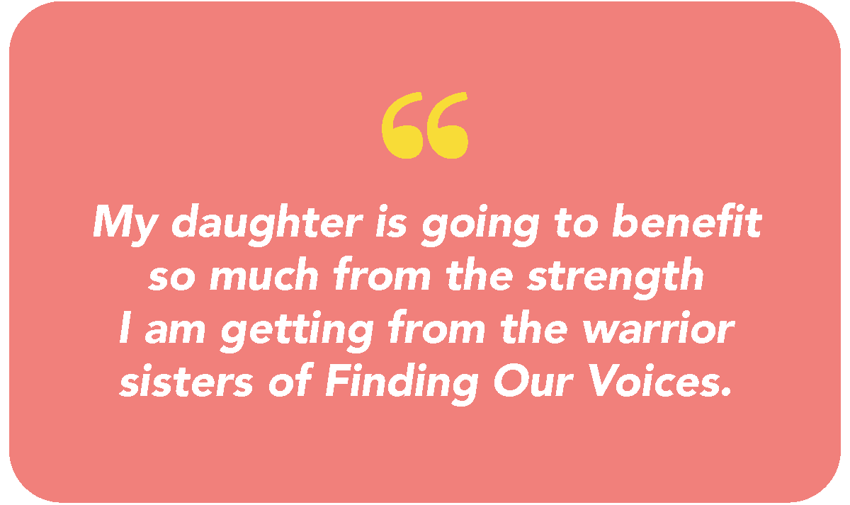 Finding Our Voices is building, and providing loving peer-support to, a community of domestic abuse survivors all across our state. We are working to remove the isolation and shame that keep women and children trapped in misery and danger, while providing hope and meaningful resources for the all-important crossover from survivor to thriver.