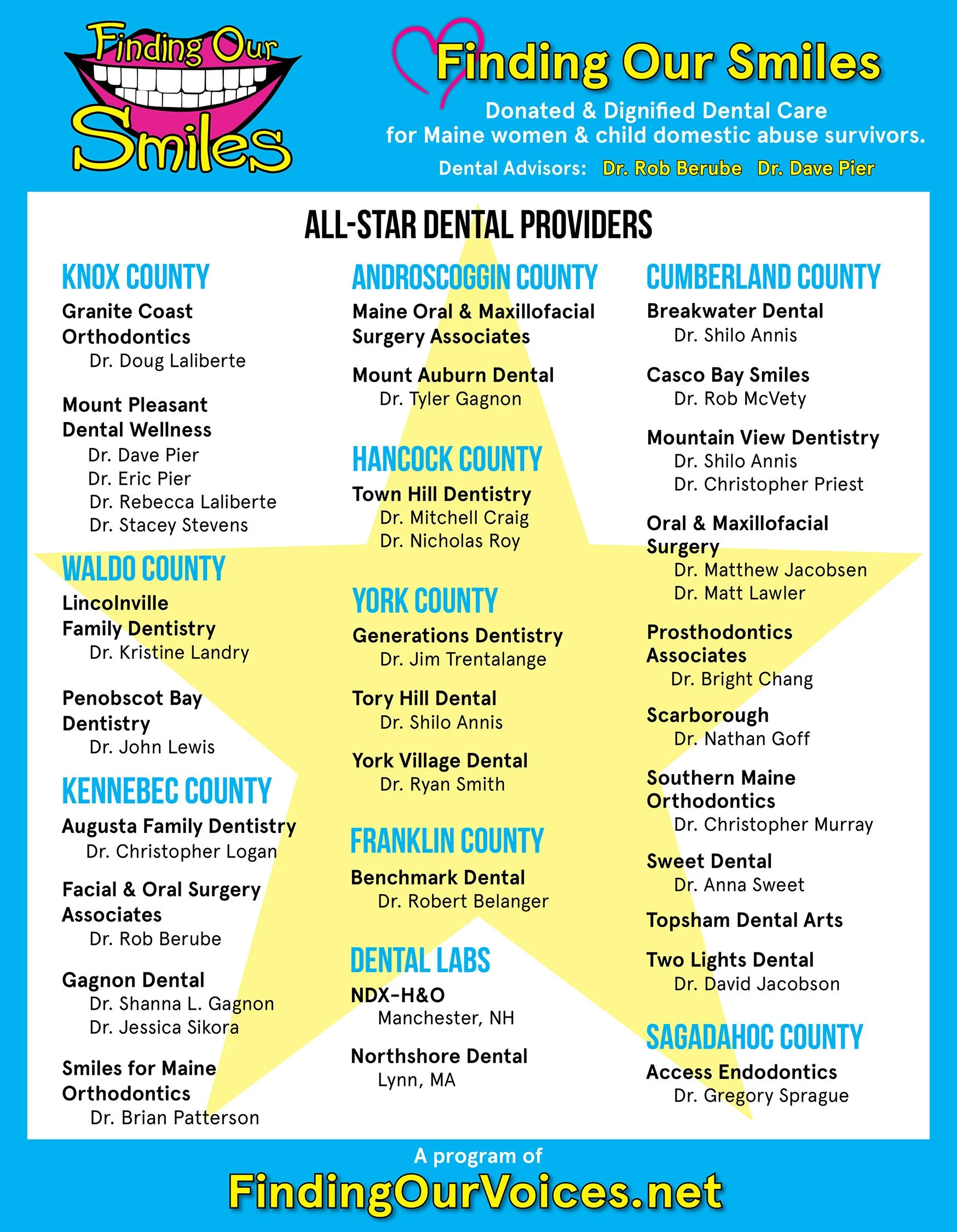 Finding Our Smiles: Dignified, donated dental care for Maine women and child domestic abuse survivors.