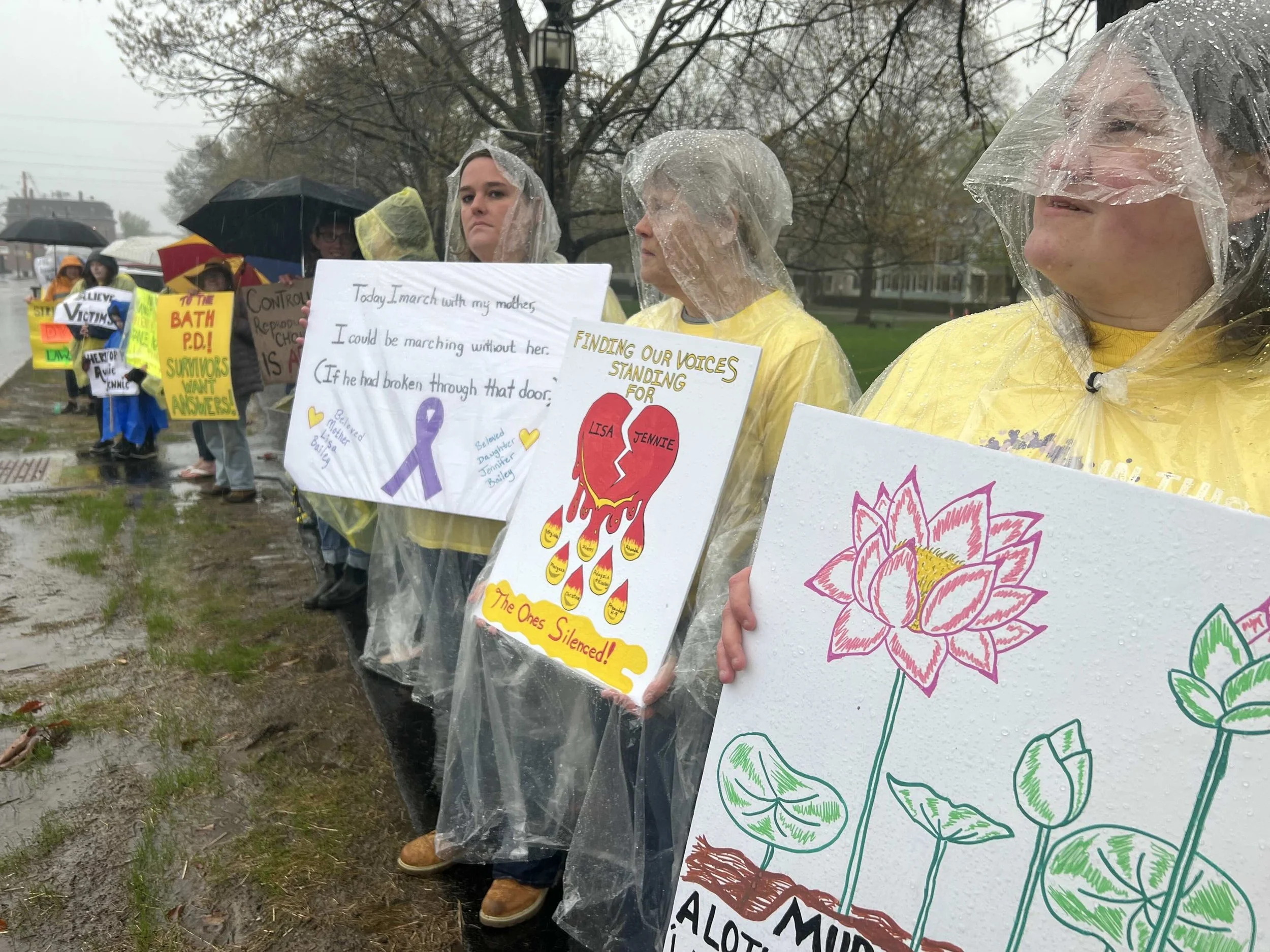 Kerry Smith was the best friend of Jennie Bailey who was killed by her father along with her mother Lisa in a double murder homicide in Bath in October, 2024. Kerry helped organize a Finding Our Voices Mother's Day Weekend of events to honor Jennie and Lisa and the other women killed in domestic violence. More than 75 of us gathered from across the state to hold up signs in the pouring rain in Brunswick about we wanted the public to know.